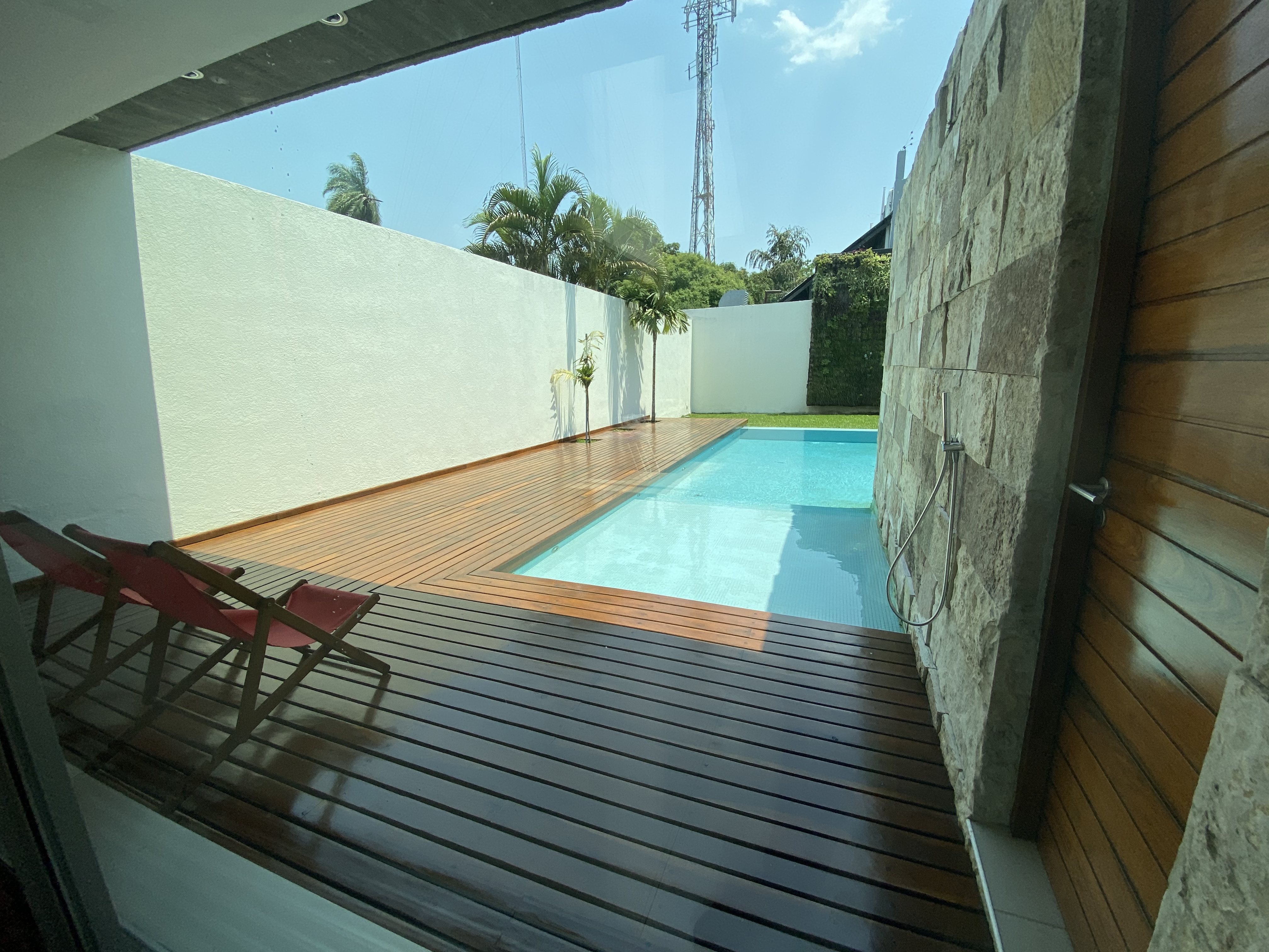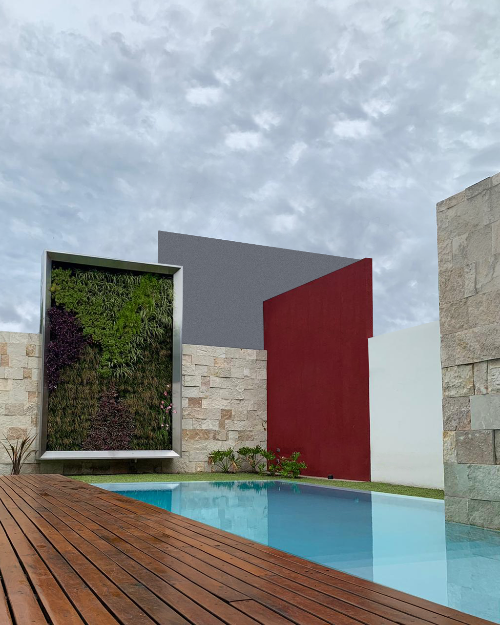 En la planta superior se desarrollan los espacios privados como la suite y los dormitorios dejando en el patio el gran deck perforado por la piscina. A modo de horizonte un jardín vertical nos recuerda los paisajes verdes del cual a veces debemos prescindir en residencias en el rea central de la ciudad por los reducidos terrenos.
