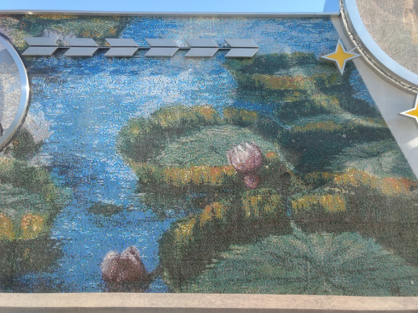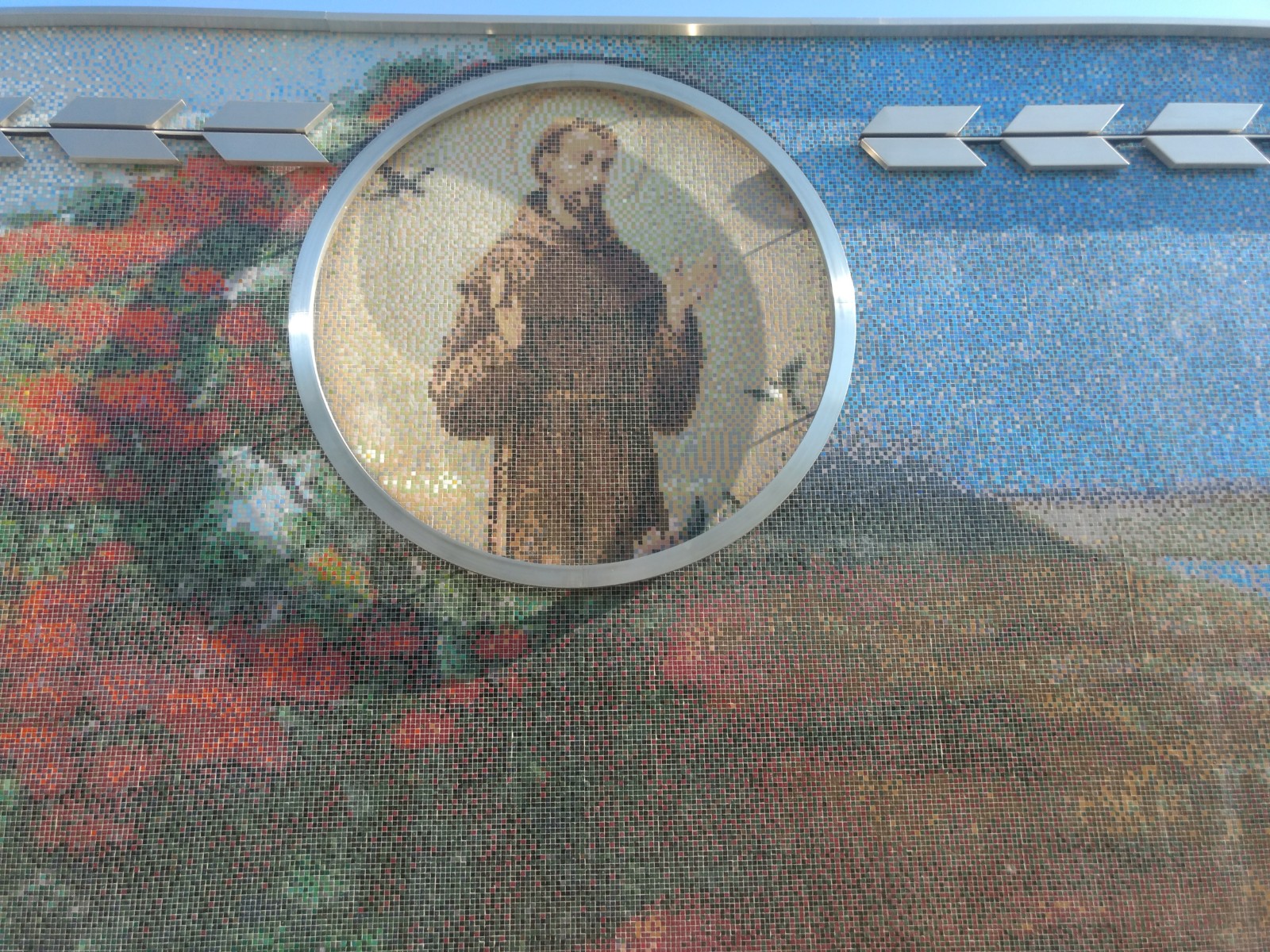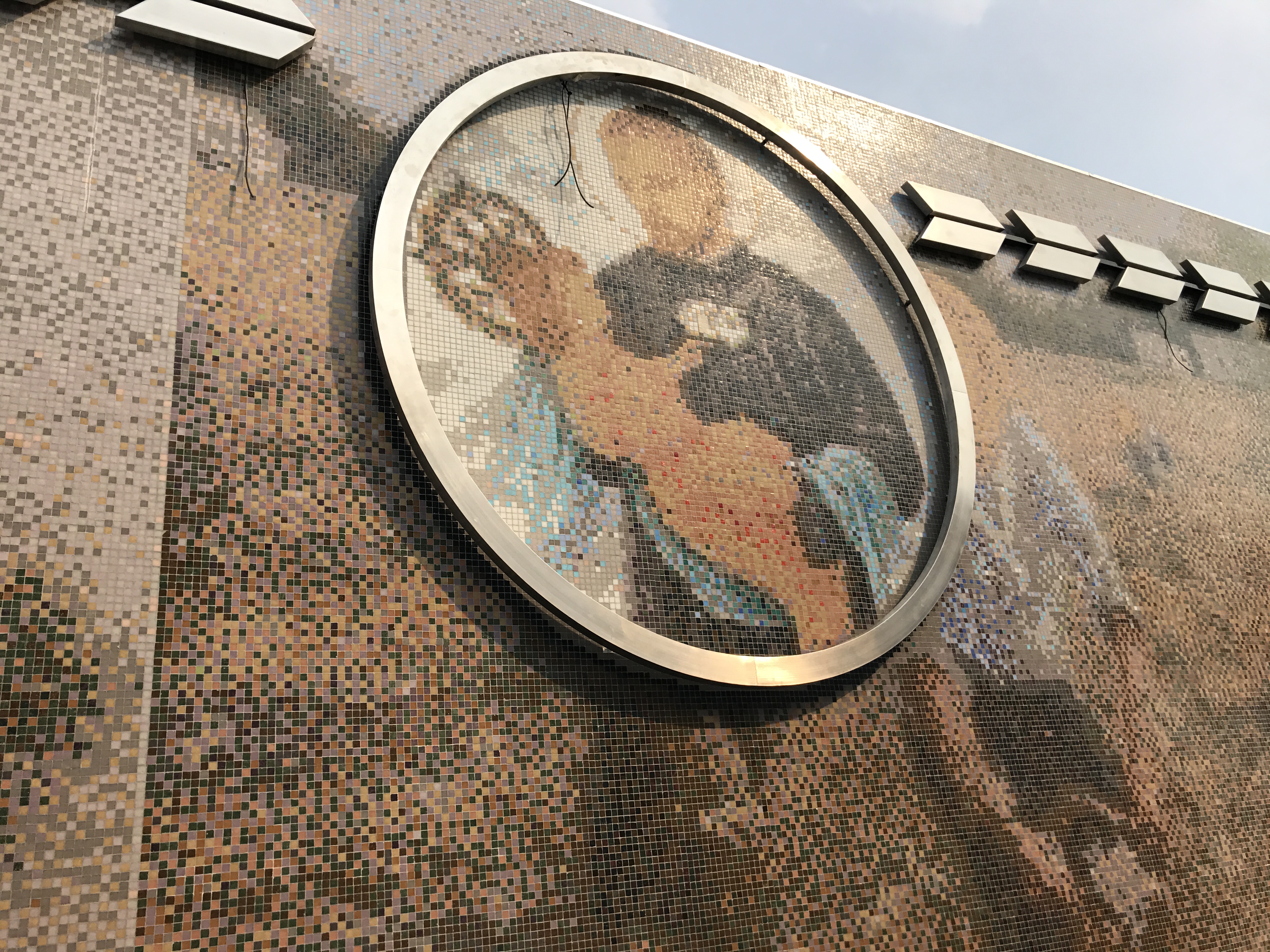 La prestigiosa artista plástica local Graciela Marechal contacto con el estudio y juntos logran el engarce de sus obras sobre la composicion del fondo de la bandera provincial, enfatizando de manera tridimensional con acero inoxidable, a los santos patronos de cada departamento, unidos entre ellos por volumenes corpóreos de los laureles de nuestra bandera. Las obras abarcan paisajes bellisimos de nuestra provincia captados pro Graciela y expresados con su creatividad en oleos que fueron minuciosamente pixelados traducidos a una trama de pixeles de vidrio opaco y translucido en mas de 50 colores y tonalidades.