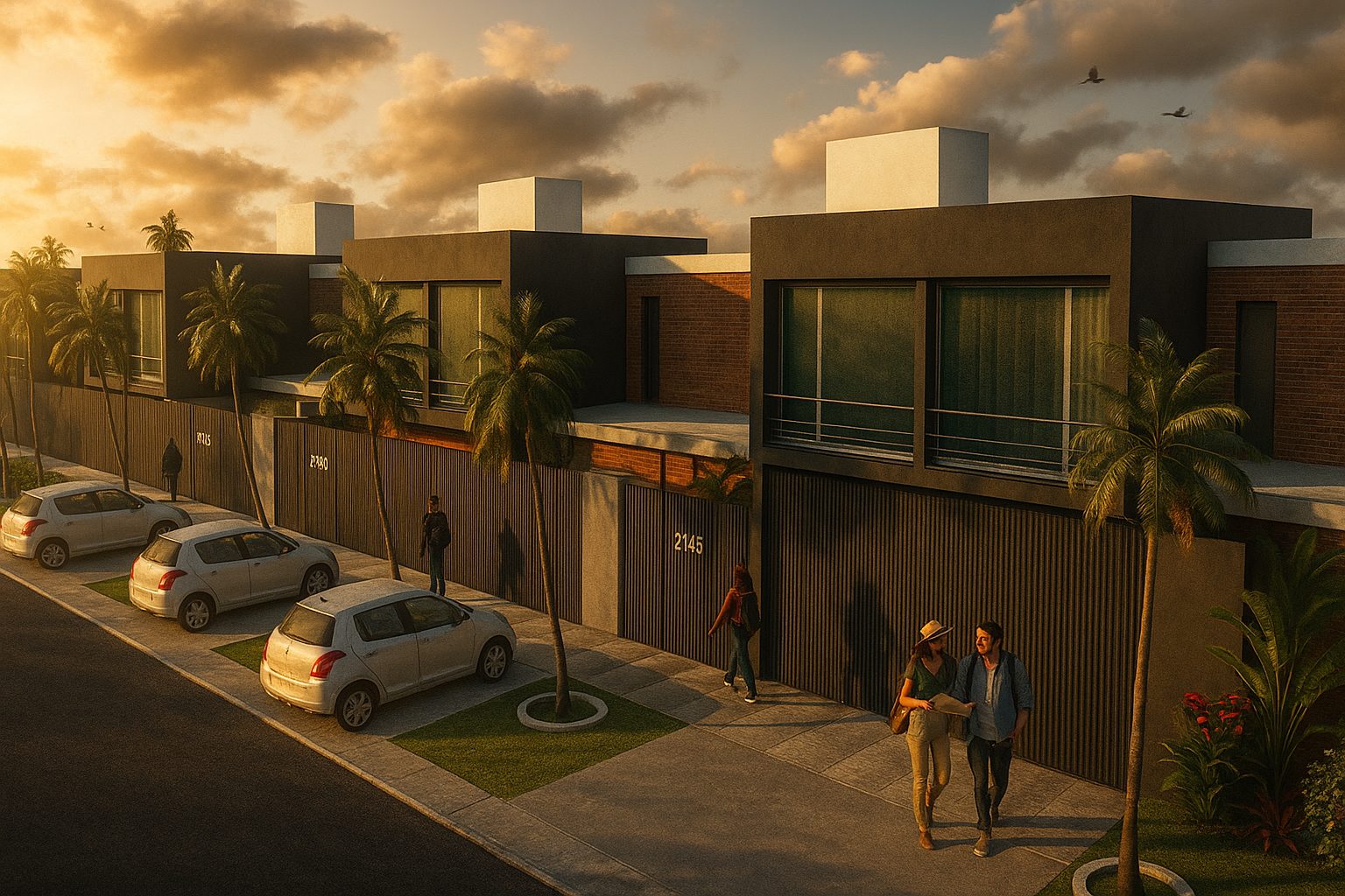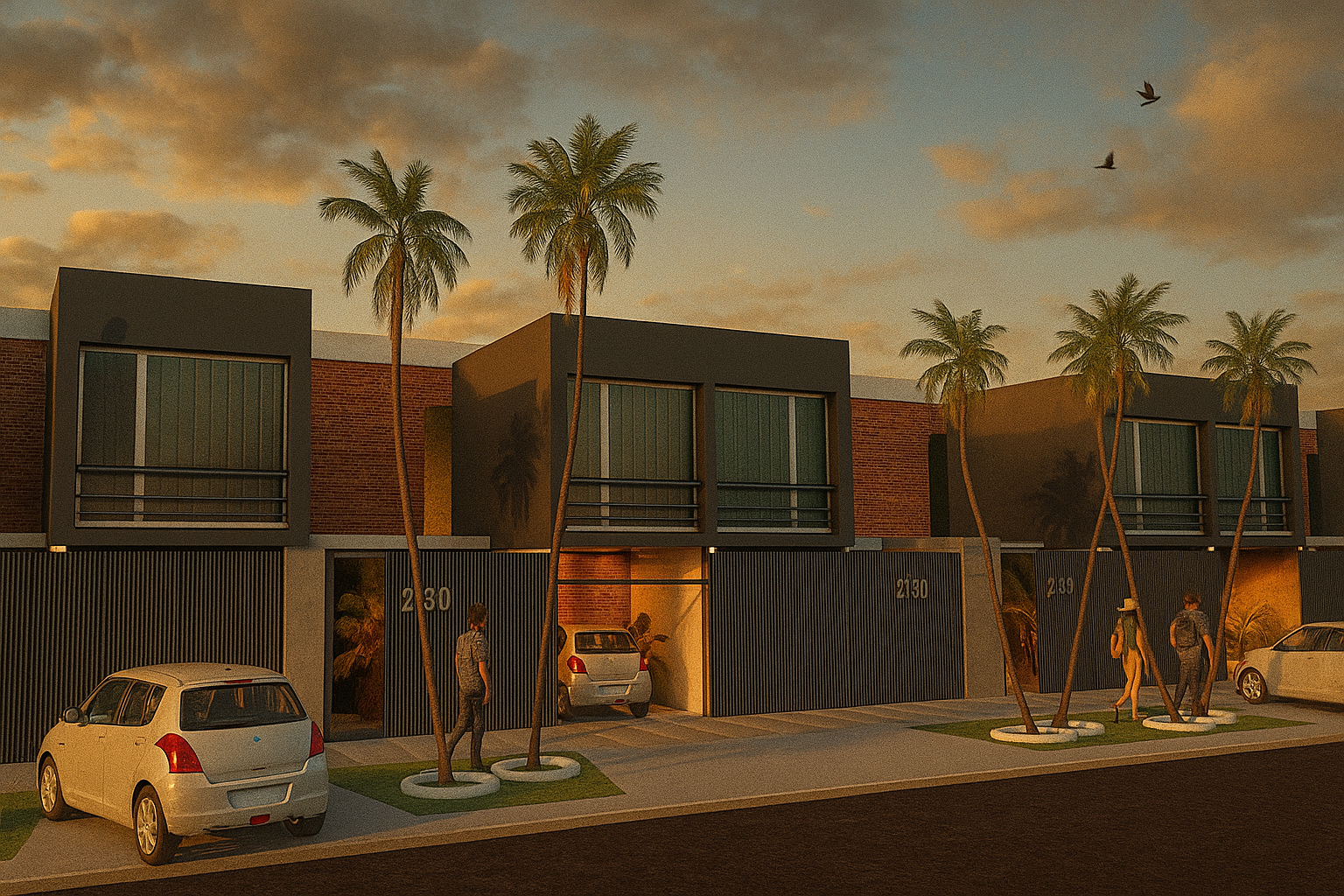 Complejo Habitacional que enfatiza una arquitectura regionalista sustentada en materiales calidos de los mampuestos mas regionales y su contraste con materiales nobles de actualidad. Cada vivienda es independeinte a las demas con entrada tanto peatonal como vehicular propia. Las tipologias comprenden las opciones de dos y tres dormitorios siempre con uno de ellos en suite con vestidor. Todas cuentan con las instalaciones pertinentes para todo tipo de tecnologia y parrilla a leña en un patio individual que propicia los encuentros. Vivir con el confort necesario pero en un ambiente natural rodeado de verde pero muy cerca del centro de la ciudad con accesos pavimentados, veredas y accesos de primera calidad.