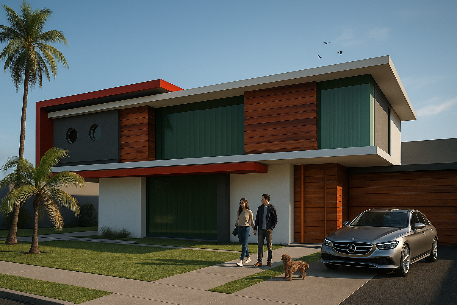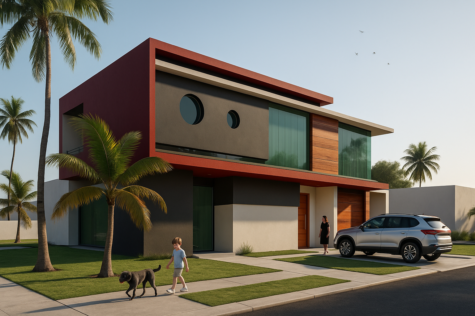 Una vivienda en esquina un terreno angosto que requeria un desarrollo lineal por medio de la sectorizacin de cajas y cintas Los actores una pareja con dos hijos infantes de vida social activa requeran un lugar convocante con piscina que a la vez sirviera de fuelle sonoro con las reas de servicio y garaje La resolucin brindo un ingreso peatonal por una calle y vehicular por la otra bifurcando estas necesidades de manera de no ocupar la totalidad del frente El resultado una vivienda permeable con espacios fluidos y abriendo sus cajas para las vistas al exterior priorizando el disfrute interior y sus conexiones