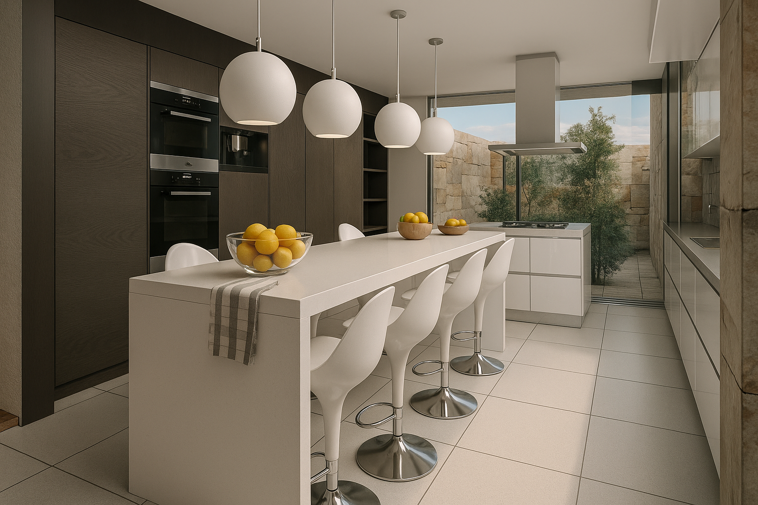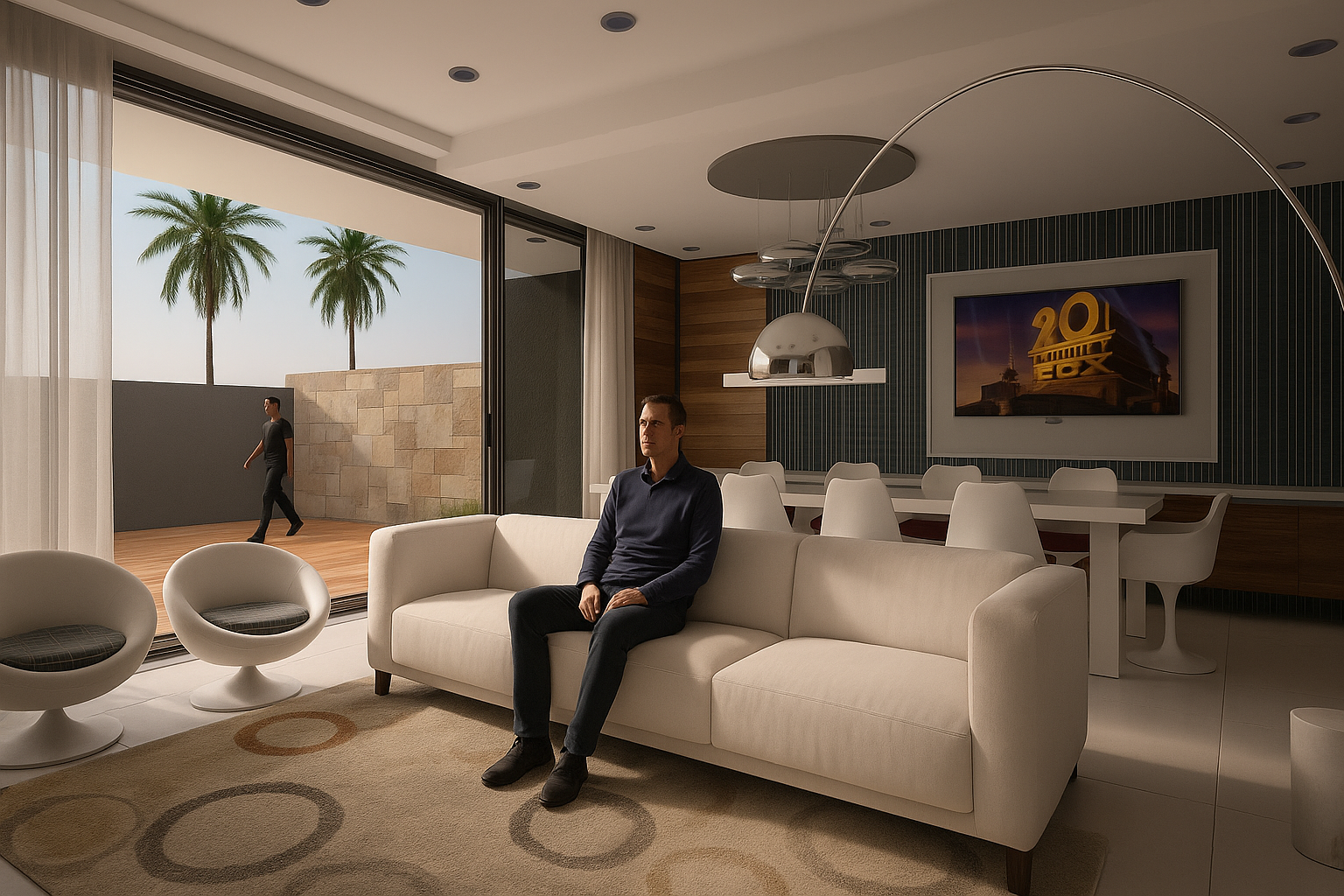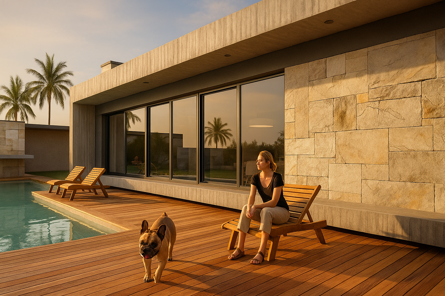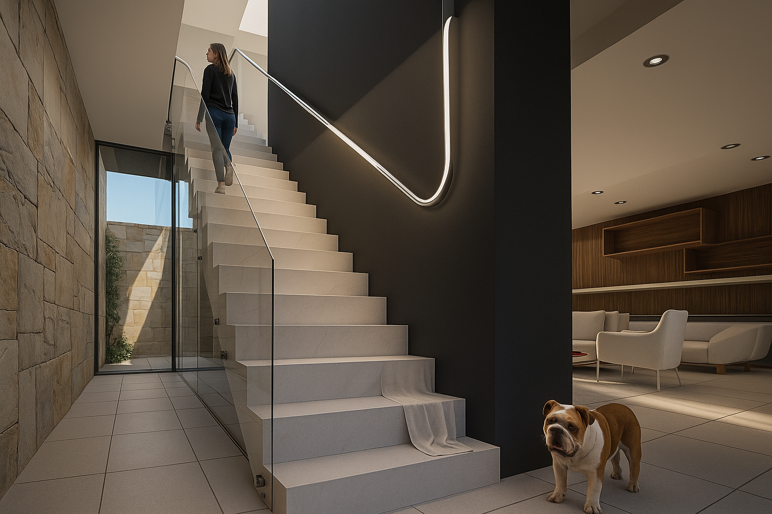 Vivienda que enfatiza la conexión entre los distintos ambientes componentes y de estos con el exterior, pero que a la vez se protege de las agresiones por medio de cerramientos dinámicos que actúan de barrera evitando la necesidad de elementos de cierre tradicionales. Al ingresar nos encontramos con el espacio social compuesto por el estar comedor integrados con apoyo de closet y toilette de cortesía. Estos espacios se perciben como un conjunto dado que los aglomera una gran caja de hormigón que los contiene y la cual sirve de nexo entre los diferentes espacios. Y que por medio de aleros perimetrales cobija los materiales de las inclemencias del tiempo. El sum también posee esta característica de interrelación con el exterior abriéndose sobre el deck para poder disfrutar de lo hecho en la parrilla sentados al aire libre un buen día de sol, o compartir un asado con la gente que se encuentra en la piscina utilizando la misma parrilla o área de fuego. La casa cuenta con un acceso independiente, que bien puede funcionar como ingreso de servicio para el mantenimiento de la piscina o la jardinería sin atravesar la casa, o para sacar al perro y las bicicletas, pero también puede funcionar de ingreso independiente del sum ante un eventual evento para que no disturbe el descanso en la suite o dormitorios, contando con su videoportero individual. Da como resultado una caja de hormigón que flota sobre el terreno dejando que el espacio fluya de un ambiente a otro sin interrupciones pero que a la noche o durante una larga ausencia pueden cerrarse mediante sistemas motorizados de cortinas metálicas que clausuran las posibilidades de eventual intrusión. Los muros bajos que bordean la composición serán materializados con ajardinamiento vertical proporcionando, al ave de una propuesta agradable, una protección virtual a la voluntad de âtreparâ estos muros.