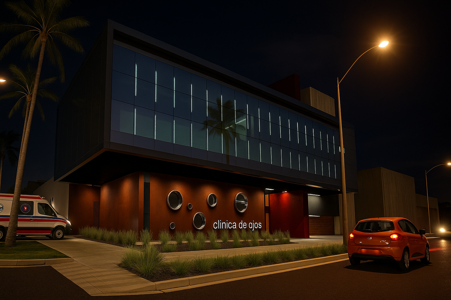 Planteo que resuelve un centro de atención permanente de la vista, sumado a consultorios externos y espacios para diversos estudios de última generación En un predio de esquina en el centro de la ciudad se materializa en planta baja con los aterramientos consecuentes de los volúmenes posteriores que cobijan el acceso y se convierten en el plano noble de la composición, a la vez que permiten visuales dadas por su piel de vidrio Un espacio de emergencias completa la premisa dejando un espacio para la acometida vehicular de este tipo de transporte donde el planteo no signifique la interaccion con las demás áreas de recepción y permita una rápida llegada al day hospital
