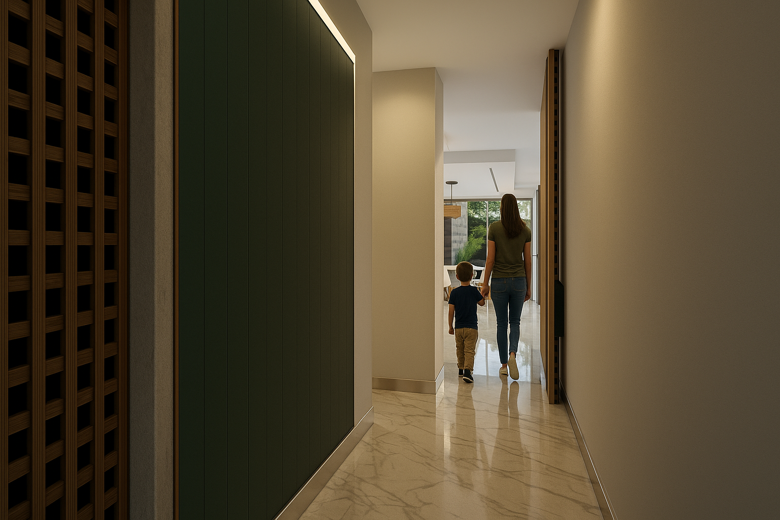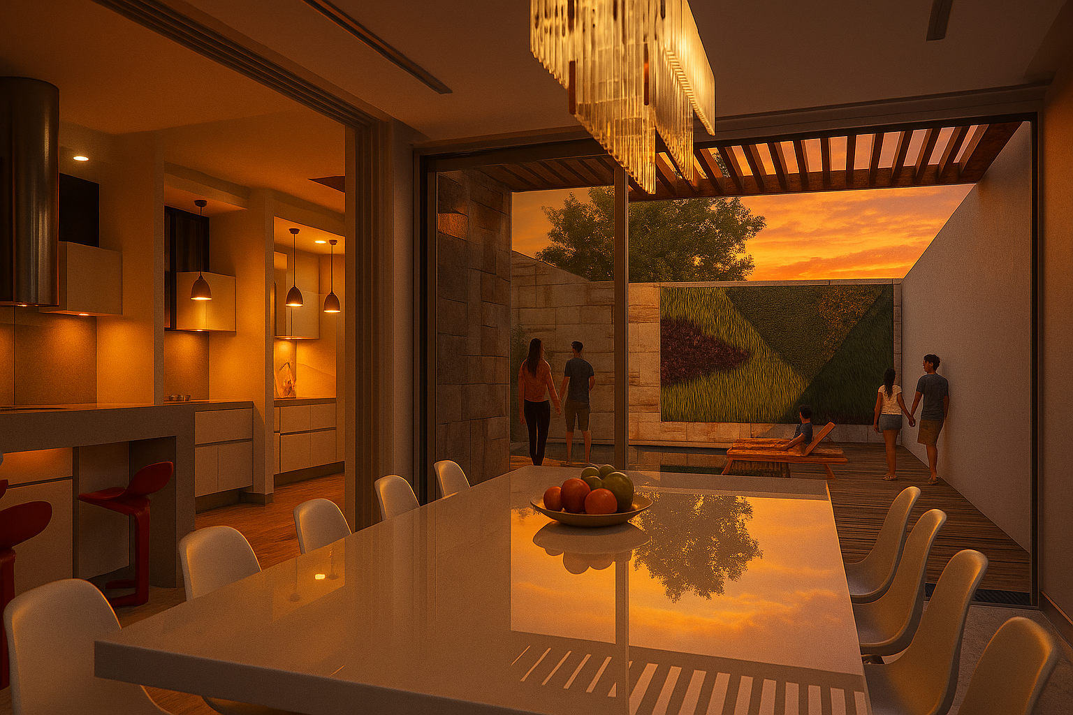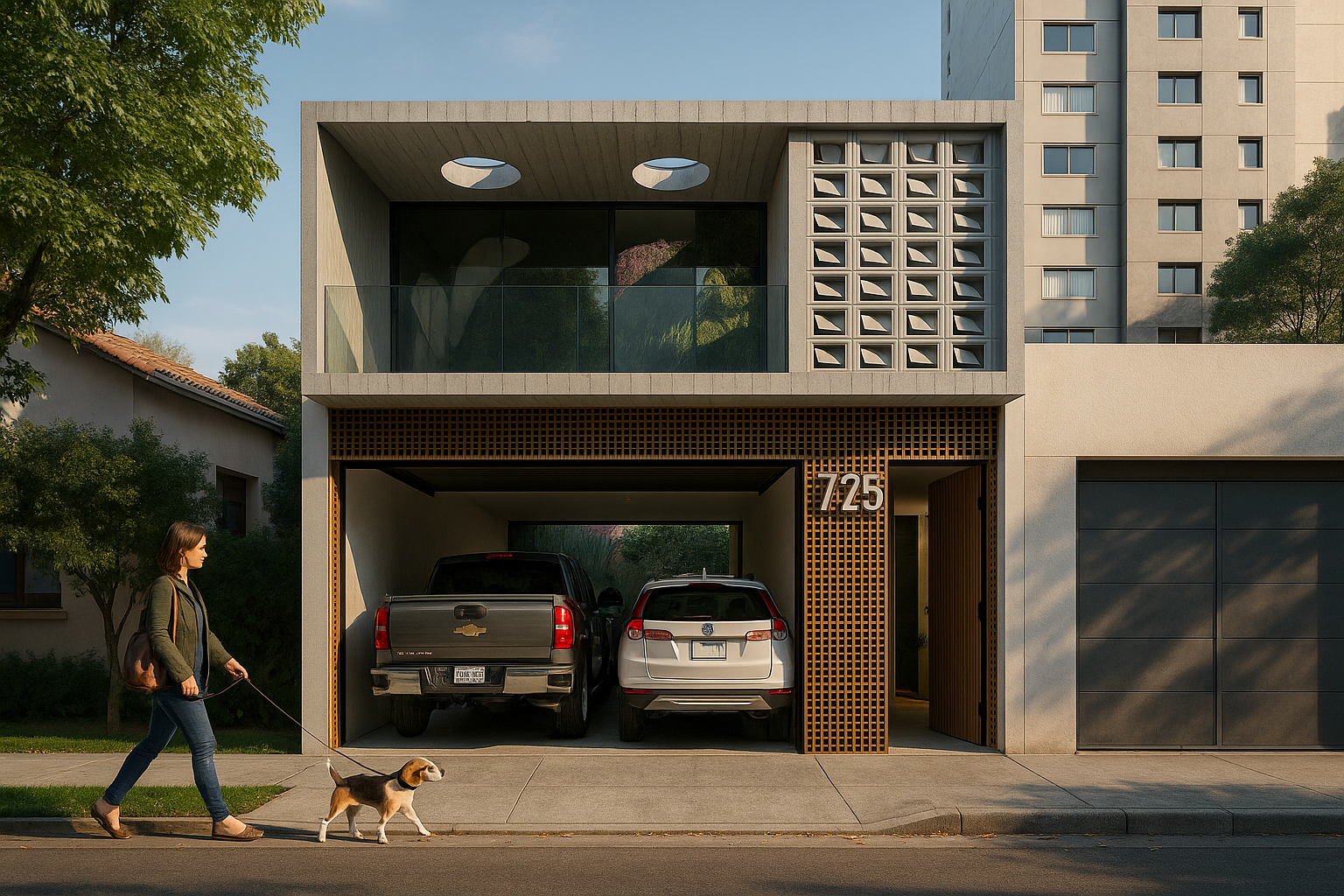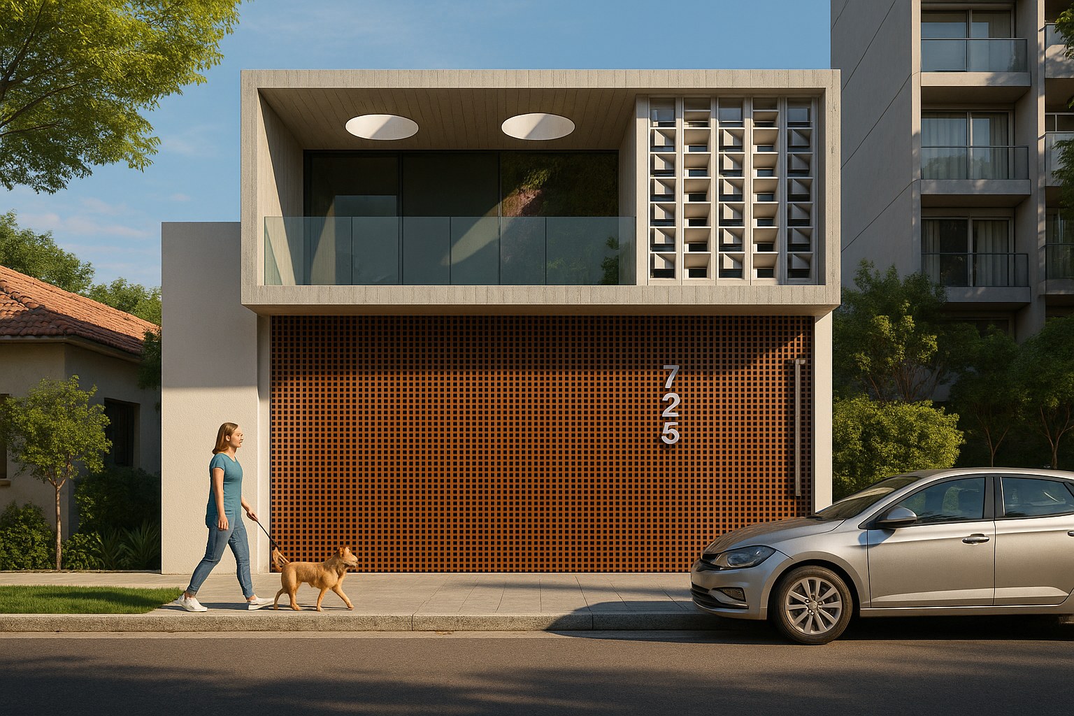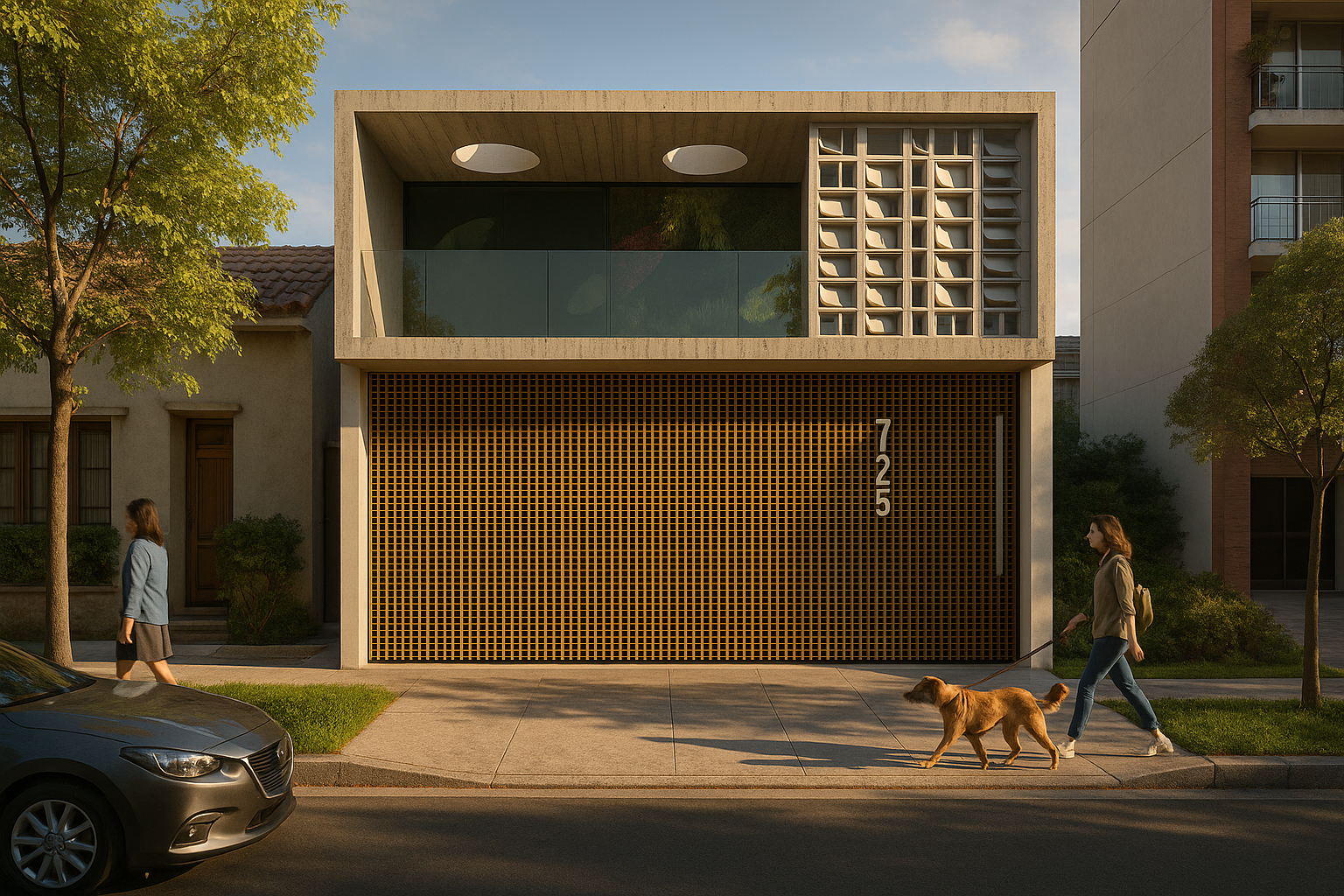 Dar origen a un nuevo hogar para una familia propone el desafío de lograr la intimidad y calidez propia de una "casa" sin perder por ello la expresión del objeto arquitectónico como tal. Es por eso que si bien Casa PGÃÂ se apoya sobre el borde de la vereda al máximo, los materiales se entrelazaran entre llenos y vacíos para poder conjugar las sombras de todas maneras y no perder su tamiz. Al ingresar los espacios fluyen naturalmente hacia el verde del jardín con la piscina infinita lo que ayuda a percibir el espacio como uno solo, reflejante,ÃÂ pero a la vez, menos seccionado, mas grande.ÃÂ En los niveles superiores se desarrolla el área intima y de servicios de blanqueria. dejando a la suite la posibilidad de exteriorizarse con un vacío de estar a la calle que dialoga con un muro verde de especies autóctonas naturales y se filtra con un cobogo de hormigón.
